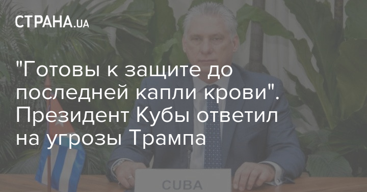 Президент Кубы Мигель Диаз-Канель Бермудез отреагировал на угрозы со стороны президента США Дональда Трампа, заявив, что страна готова защищать себя силой.