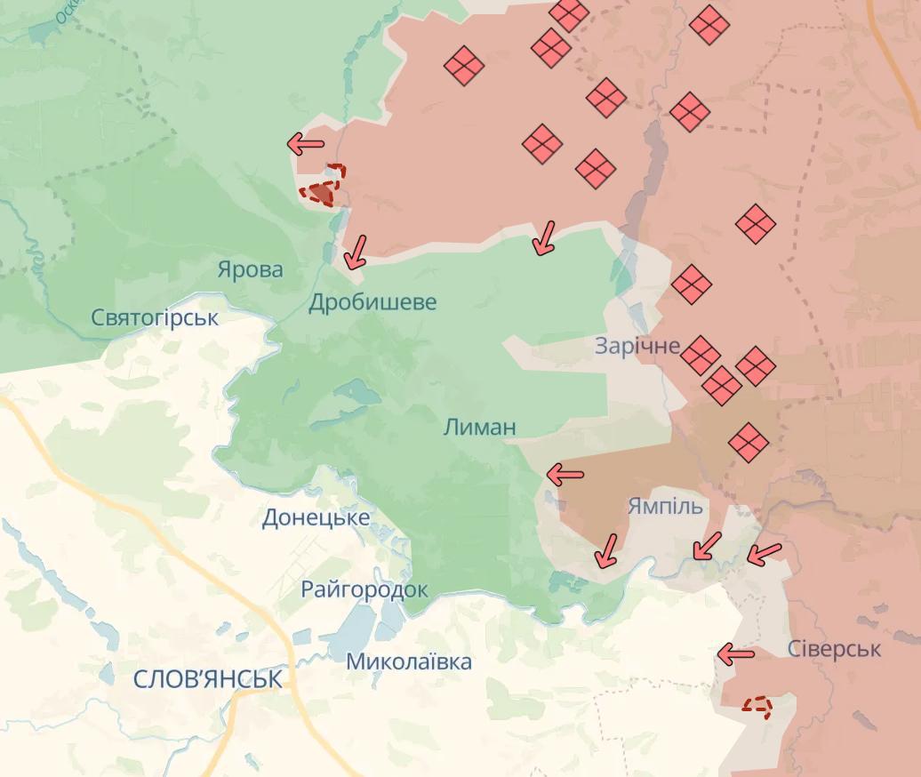 14.05 Армия РФ продвинулась под Святогорском и Северском на севере Донецкой области, сообщает Deep State.