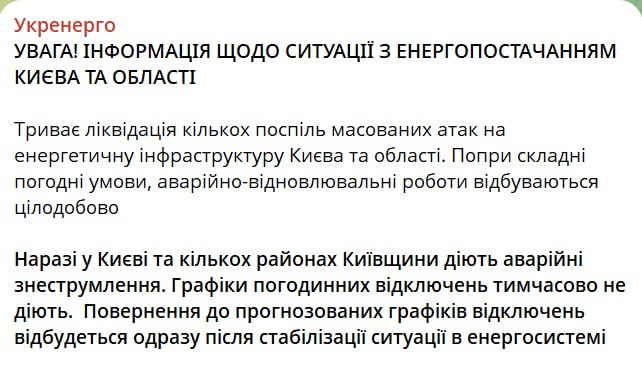 7.57 По всему Киеву ввели экстренные отключения света, сообщает ДТЭК.