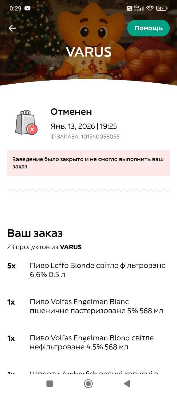 Связано ли это с внеплановым закрытием магазина (как это в последние дни происходит со многими супермаркетами) или же с другими причинами, пока неизвестно. Но ситуация, по словам жителя левобережья столицы, который вчера вечером хотел заказать себе товары в супермаркете, выглядит плохо: "Сначала Glovo отображает в своем меню, что магазин работает и принимает заказы. Делаешь заказ, и магазин даже со счета списал деньги. Но потом приходит сообщение, что супермаркет по состоянию на 19:25 уже закрыт и от заказа отказывается, когда курьер ехал его забрать. Через какое-то время списанные деньги вернулись на счет".