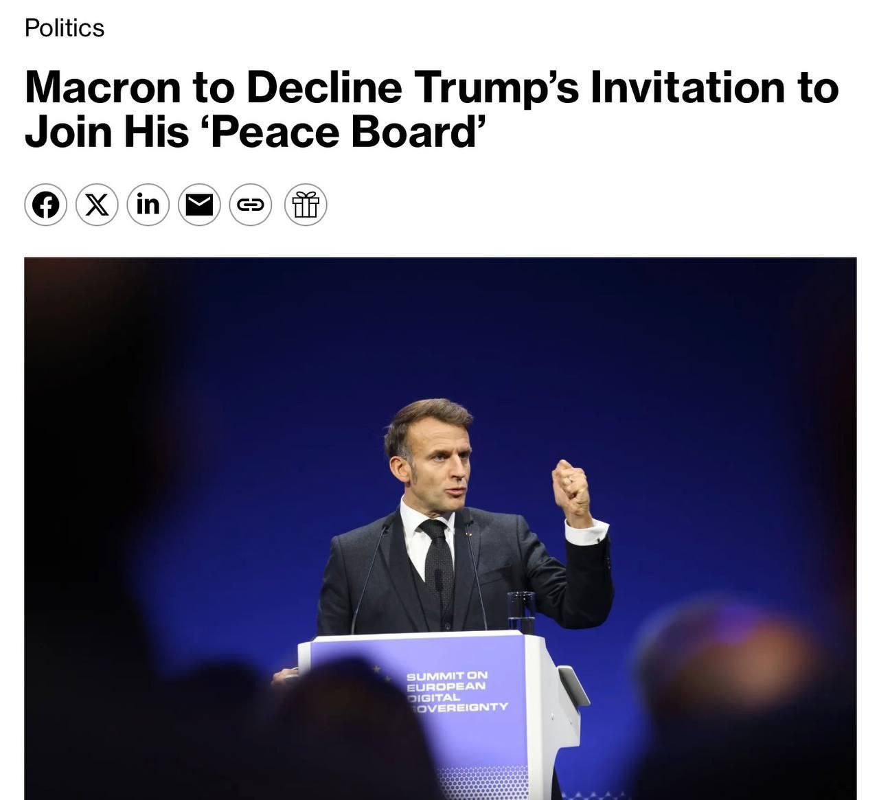 Президент Франции Эмманюэль Макрон отклонит приглашение главы Белого дома Дональда Трампа присоединиться к Совету мира.