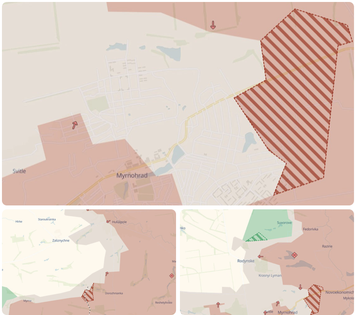 При этом паблик пишет, что от россиян зачищено Сухецкое севернее Мирнограда, находившееся в серой зоне.