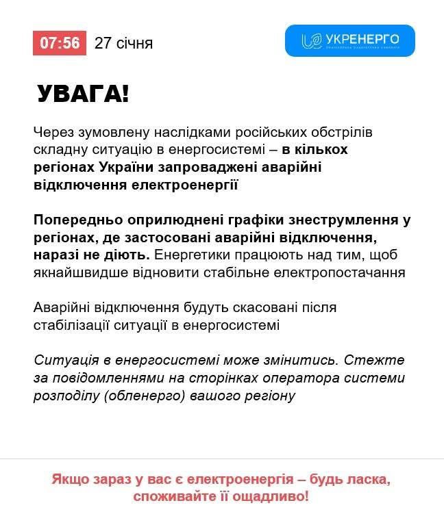 Напомним, Киев живет в режиме экстренных отключений без графиков с 9 января. Со вчерашнего дня в таком же режиме находятся Харьков и область.