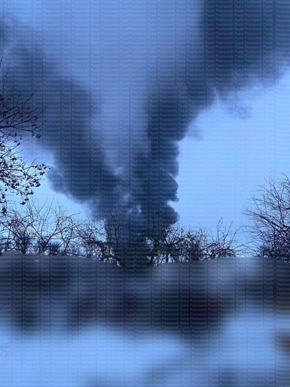 9.00 Чёрный столб дыма в Бродах Львовской области после утреннего удара по объекту инфраструктуры.