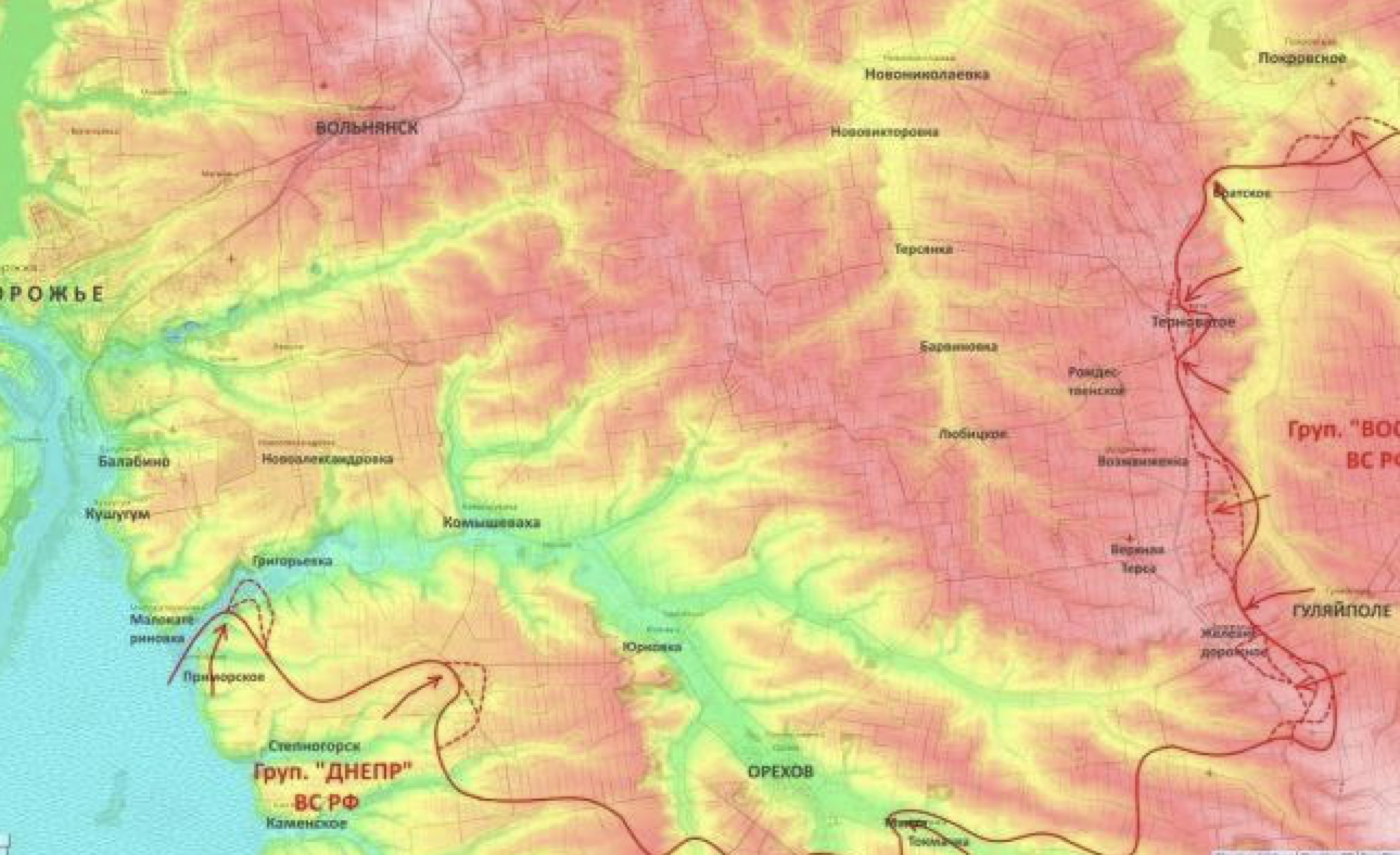 От Терноватого остаётся менее 15 км до трассы, которая ведёт с севера в Орехов - передовой укрепрайон украинских войск, прикрывающих область с юга.