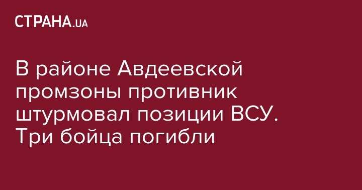 В районе Авдеевской промзоны противник штурмовал позиции ВСУ. Три бойца погибли