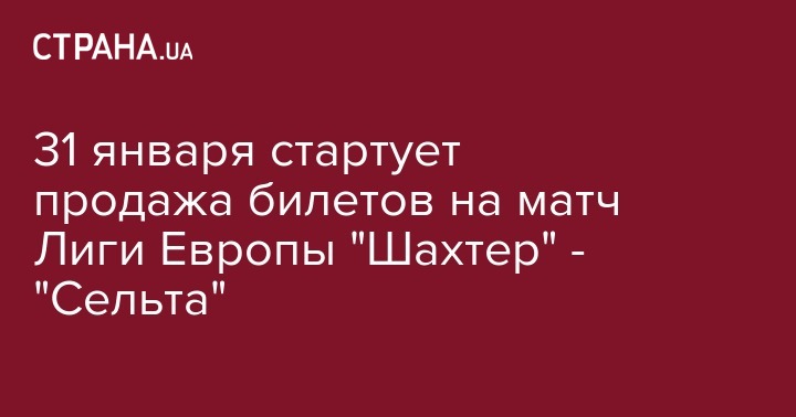 31 января стартует продажа билетов на матч Лиги Европы "Шахтер" - "Сельта"