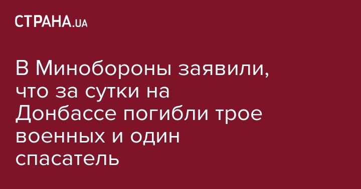 В Минобороны заявили, что за сутки на Донбассе погибли трое военных и один спасатель