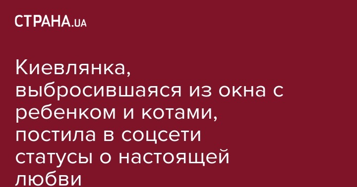 Киевлянка, выбросившаяся из окна с ребенком и котами, постила в соцсети статусы о настоящей любви
