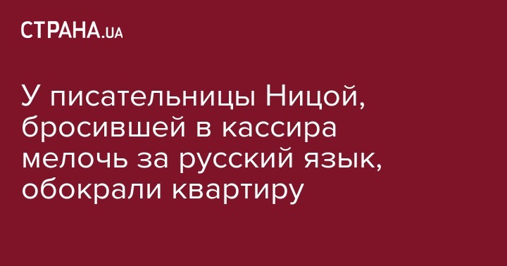 У писательницы Ницой, бросившей в кассира мелочь за русский язык, обокрали квартиру
