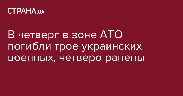 "В общем зафиксировано 35 обстрелов. К сожалению, трое наших военных погибли, четверо – ранены", - говорится в сводке пресс-центра по состоянию на 18.00 четверга, обнародованной на странице пресс-центра штаба в Фейсбук.