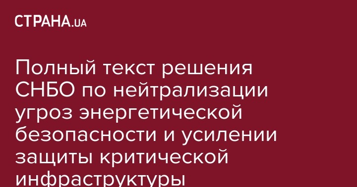 О неотложных мерах по нейтрализации угроз энергетической безопасности Украины и усиления защиты критической инфраструктуры.