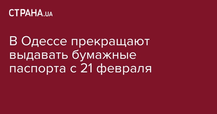 В Одессе начиная с 21 февраля паспорт гражданина Украины будет выдаваться только в виде пластиковой карты. Об этом сообщили в пресс-службе горсовета.