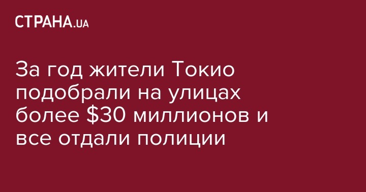 За 2016 год жители Токио подобрали на улице и передали правоохранителям наличные на сумму в 3,67 млрд иен (32,5 млн долларов). Об этом сообщает ВВС.