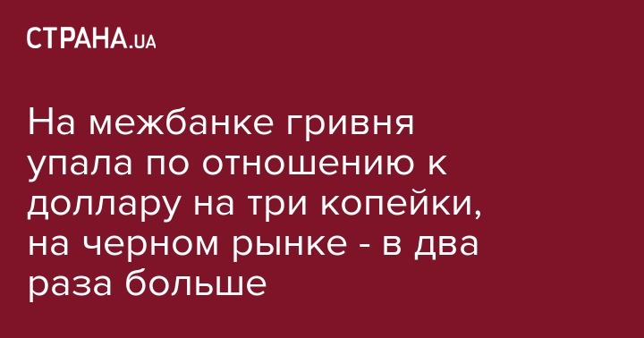 На межбанке гривня упала по отношению к доллару на три копейки, на черном рынке - в два раза больше
