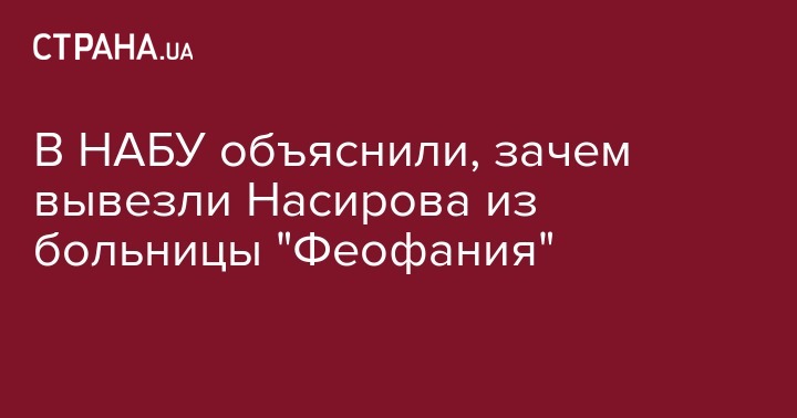"Сейчас Насирова транспортируют в другое медицинское учреждение, чтобы объективно узнать состояние его здоровья", - пояснили в ведомстве.