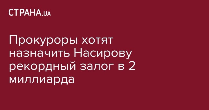 По словам Найема, Специализированная антикоррупционная прокуратура требует для Насирова в качестве меры пресечения содержание под стражей, которое может быть заменено на залог в 2 миллиарда гривен.