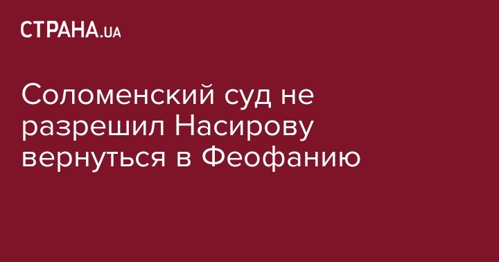 Защите временно отстраненного от должности председателя Государственной фискальной службы Романа Насирова отказали в просьбе вернуться их клиенту в клинику "Феофания". Такое решение принял Соломенский районный суд Киева, пишет УНН.
