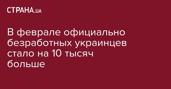 На 1 февраля 2017 года в Госслужбе занятости были зарегистрированы 429 тыс. безработных. Количество безработных, получивших государственную помощь в феврале, составило 364,9 тыс. человек, средний размер пособия на одного безработного в этом месяце составил 1 923 гривен.