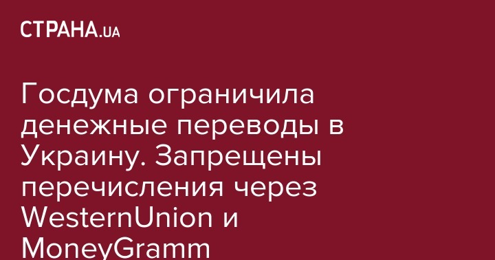 Госдума приняла во втором чтении законопроект, которым предлагается ограничить денежные переводы из РФ в иностранные государства с помощью иностранных платежных систем. Поправки касаются переводов в Украину. Об этом сообщает "Российская газета".