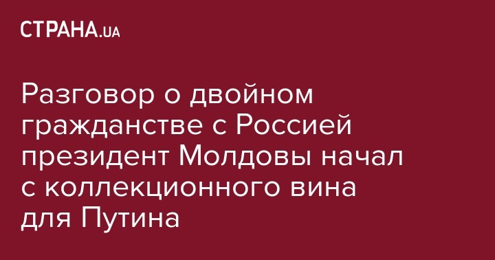 Разговор о двойном гражданстве с Россией президент Молдовы начал с коллекционного вина для Путина