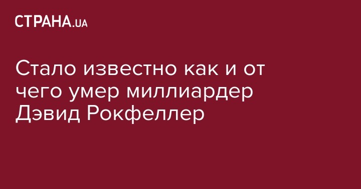 О кончине внука основателя династии Джона Рокфеллера, чье личное состояние составляло всего $3 млрд., сообщали неоднократно, но каждый раз слухи о его смерти оказывались дезинформацией.