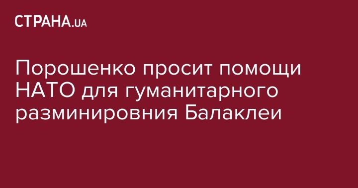 "Дал срочное поручение МИД, Минобороны и ГСЧС привлечь помощь НАТО для гуманитарного разминирования в Балаклее", – написал Порошенко в своем twitter-микроблоге.