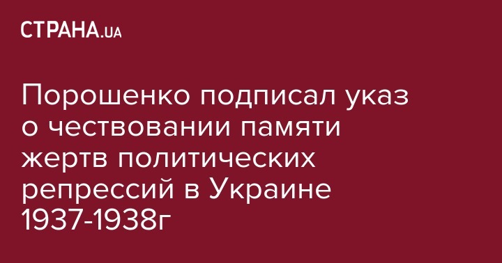 Президент Украины Петр Порошенко подписал указ "О мероприятиях в связи с 80-й годовщиной "Большого террора" – массовых политических репрессий на территории Украины 1937-1938 годов". Об этом сообщает пресс-служба Администрации президента.