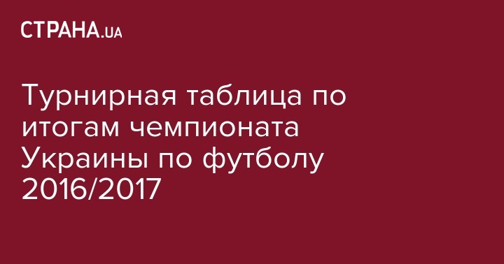 Турнирная таблица по итогам чемпионата Украины по футболу 2016/2017