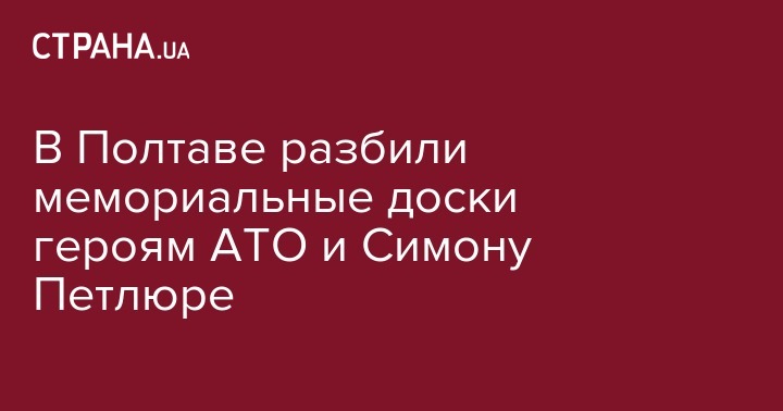 В Полтаве неизвестные разбили мемориальные доски двум погибшим героям АТО и повредили мемориальную доску Симону Петлюре. Об этом сообщает Юрий Сулаев на своей странице в Facebook.