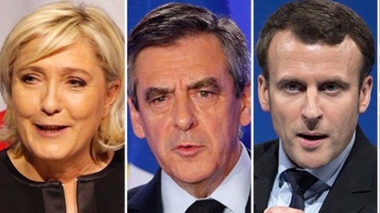 Тройка лидеров президентской гонки - Марин Ле Пен, Франсуа Фийон и Эммануэль Макрон, Коллаж