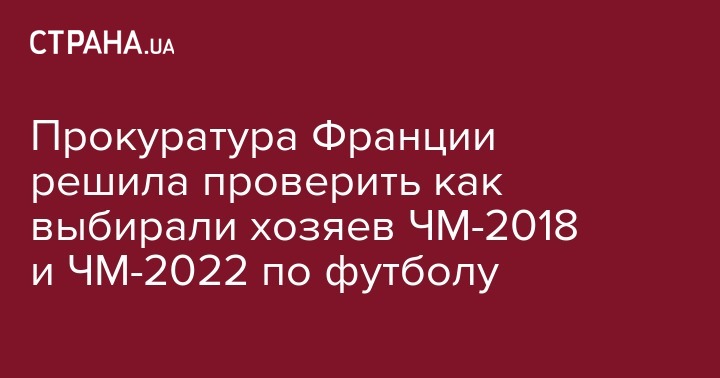 Французские прокуроры расследуют процесс выборов стран-хозяев чемпионатов мира по футболу 2018 и 2022 годов, сообщает Le Monde. ЧМ-2018 пройдет в России, первенство 2022 года состоится в Катаре.