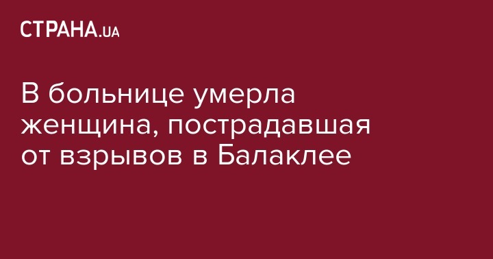 В Балаклее Харьковской области в больнице умерла женщина, раненная в результате взрывов на военных складах. Об этом сообщает УНН.