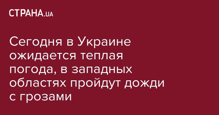 В западной части временами дождь, местами гроза, температура ночью 8-13°, днем ​​14-19°, на Волыни и Львовщине 10-15°.