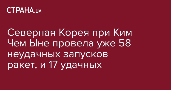 Северная Корея при Ким Чем Ыне провела уже 58 неудачных запусков ракет, и 17 удачных
