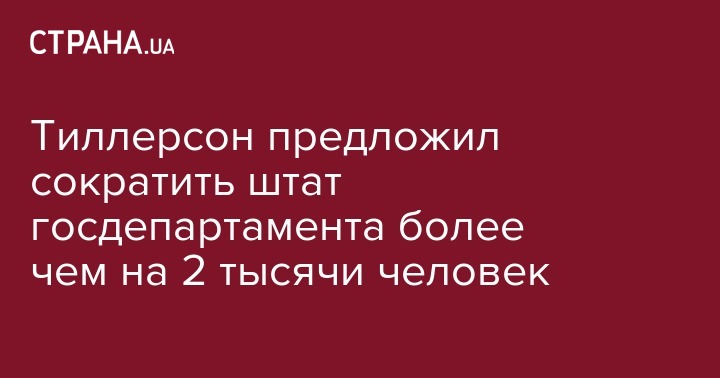 Госсекретарь США Рекс Тиллерсон обнародовал планы по сокращению штатов Госдепартамента примерно на 2,3 тыс. человек, сообщает Интерфакс-Украина со ссылкой на агентство АР.