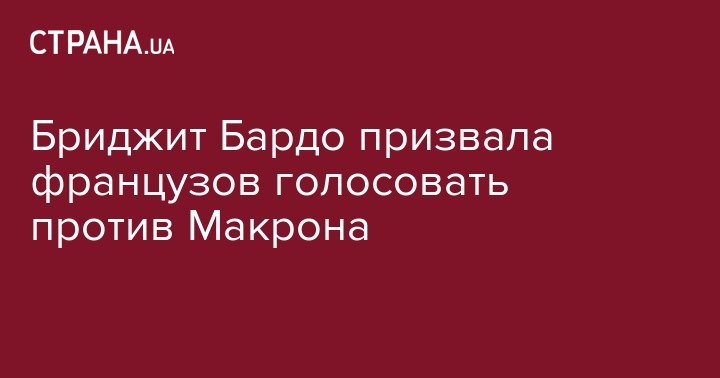 Актриса и защитница животных Бриджит Бардо призвала французов во втором туре президентских выборов не отдавать свои голоса за Эммануэля Макрона. Об этом говорится в ее заявлении в Twitter.