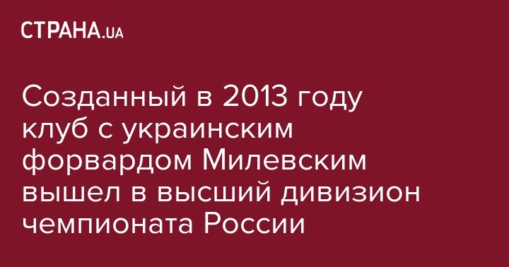 Созданный в 2013 году клуб с украинским форвардом Милевским вышел в высший дивизион чемпионата России