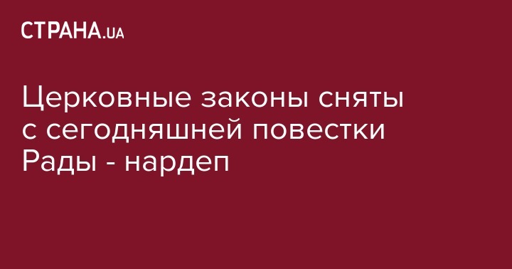 Заместитель председателя фракции "Блок Петра Порошенко" Алексей Гончаренко заявил, что 18 мая церковные законы сняты с сегодняшней повестки Верховной Рады. Об этом сообщает РБК Украина.