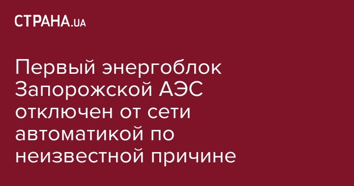 В 15.09 воскресенья энергоблок №1 Запорожской АЭС действием автоматики был отключен от сети и сейчас специалисты выясняют причины срабатывания автоматики, сообщает пресс-служба НАЭК "Энергоатом".