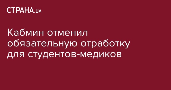 Кабинет министров сегодня на заседании принял постановление, которым отменил обязательную отработку для украинских студентов-медиков. Об этом сообщает пресс-служба Кабмина.