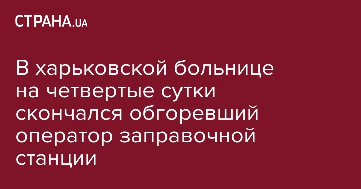 В Харьковской городской больнице скорой помощи скончался оператор заправочной станции. Ранее он получил ожоги 90% тела в результате ЧП на нефтебазе в Немышлянском районе Харькова.