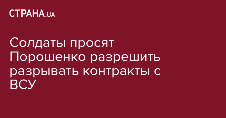Украински солдаты просят президента Петра Порошенко разрешить им разрывать контракт с Вооруженными силами. В группе "Життя солдата" в соцсети Вконтакте армейцы сообщили, что уже опубликовали на официальном сайте главы государства петицию с соответствующей просьбой.