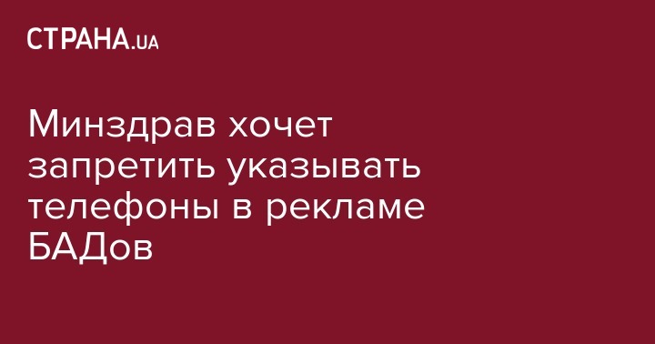 Министерство здравоохранения предлагает запретить указывать в рекламе биологически активных добавок (БАД) контактные телефоны. Такое предложение содержится в проекте закона о внесении изменений в статью 21 закона "О рекламе", передает "Интерфакс-Украина".