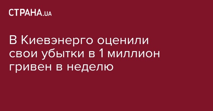 Убытки от отключения от газоснабжения ТЭЦ-6 в Киеве у компании "Киевэнерго" достигли 1 млн гривен в неделю. Об этом заявил глава наблюдательного совета "Киевэнерго" Иван Плачков, пишут "Украинские новости".