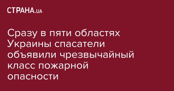 Так, 16 июня в Волынской, Ровенской, Киевской, центральных и южных областях объявлена чрезвычайная (5 класса) пожарная опасность.