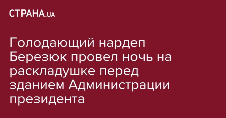 Лидер парламентской фракции "Сапомопомощь" Олег Березюк второй день подряд голодает перед Администрацией президента. Об этом сообщают корреспонденты "Страны".