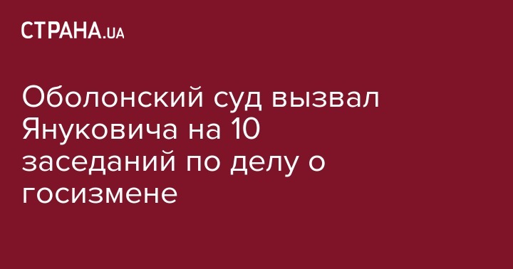 Оболонский районный суд Киева вызывает бывшего президента Виктора Януковича на 10 ближайших заседаний суда по делу о государственной измене.