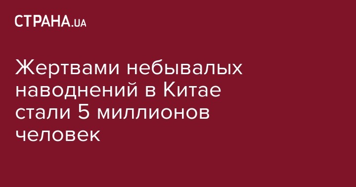 В результате обильных осадков в Китайской провинции, которые не прекращаются уже неделю, произошли масштабные наводнения. В стихийном бедствии пострадали более 5 миллионов человек. Об этом сообщает "Синьхуа".