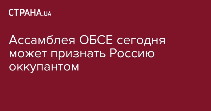 Комитет по политическим вопросам и безопасности Парламентской Ассамблеи ОБСЕ подготовил на заседание сессии, которая стартует сегодня в Минске, резолюцию по Украине, которая предлагает признать Россию оккупантом. Об этом сообщает "112 Украина".